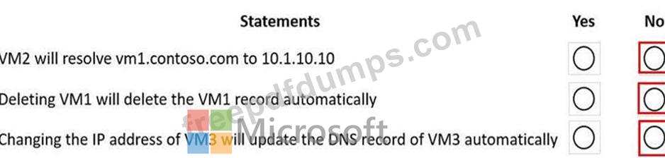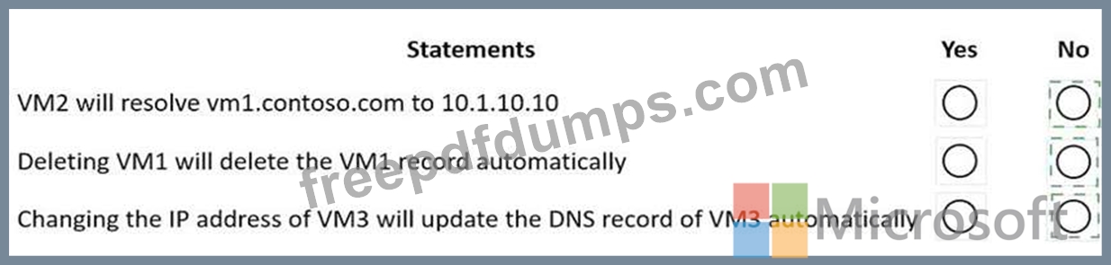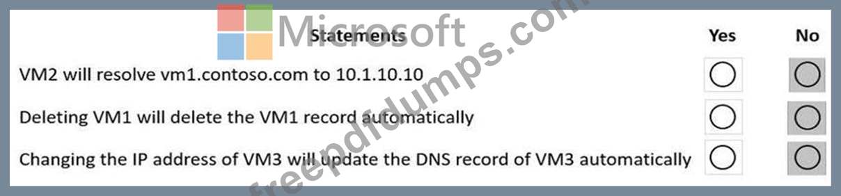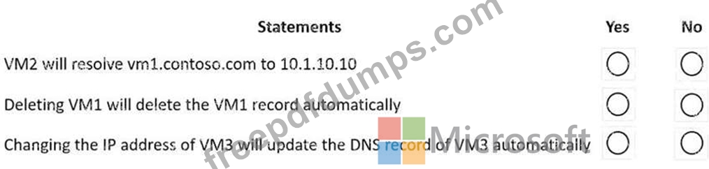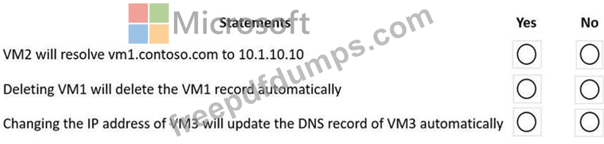 You have an Azure private DNS zone named contoso.com that is linked to the virtual networks shown in the following table.