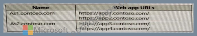 You have two Azure App Service instances that host the web apps shown the following table.
