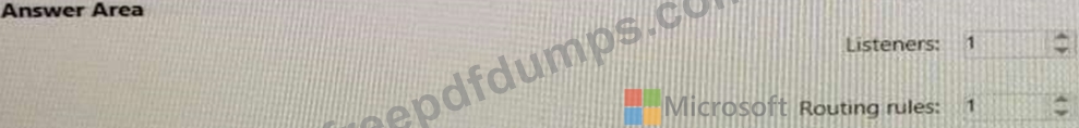 What is the minimum number of listeners and routing rules you should configure? To answer, select the appropriate options in the answer area.