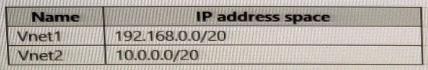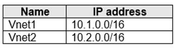 You have two Azure virtual networks named Vnet1 and Vnet2.