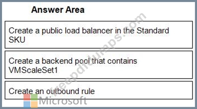 You need to implement outbound connectivity for VMScaleSet1. The solution must meet the virtual networking requirements and the business requirements.