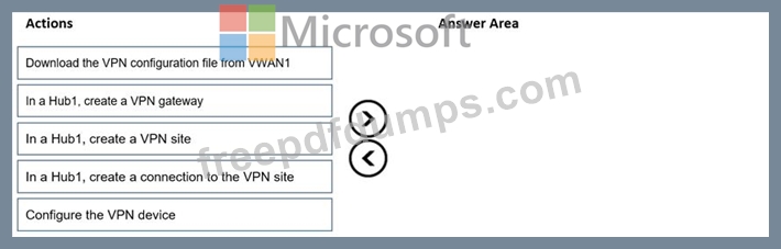 You have an Azure virtual WAN named VWAN1 that has a hub named Hub1. Hub1 connects two of the three on-premises sites by using a Site-to-Site VPN connection.