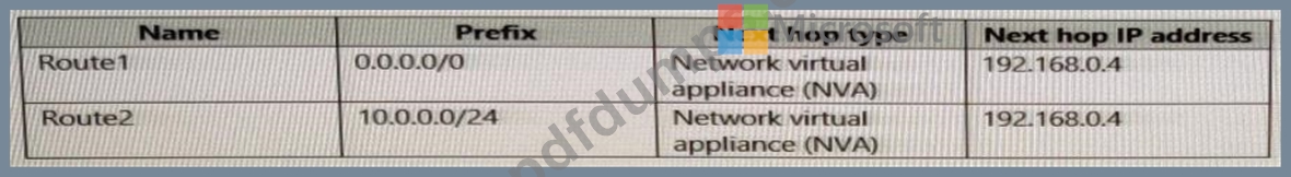 Vnet1 connects to an ExpressRoute circuit. The on-premises router advertises the following routes: