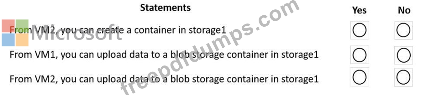 You need to ensure that VM1 can access storage1. VM1 must be prevented from accessing any other storage accounts.
