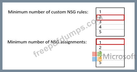 What is the minimum number of custom NSG rules and NSG assignments required? To answer, select the appropriate options in the answer area.