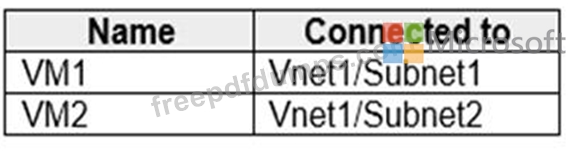 You have an Azure virtual network that contains two subnets named Subnet1 and Subnet2. Subnet1 contains a virtual machine named VM1. Subnet2 contains a virtual machine named VM2.
