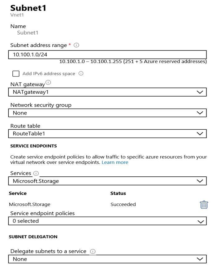 You have an Azure virtual network named Vnet1 that contains two subnets named Subnet1 and Subnet2.