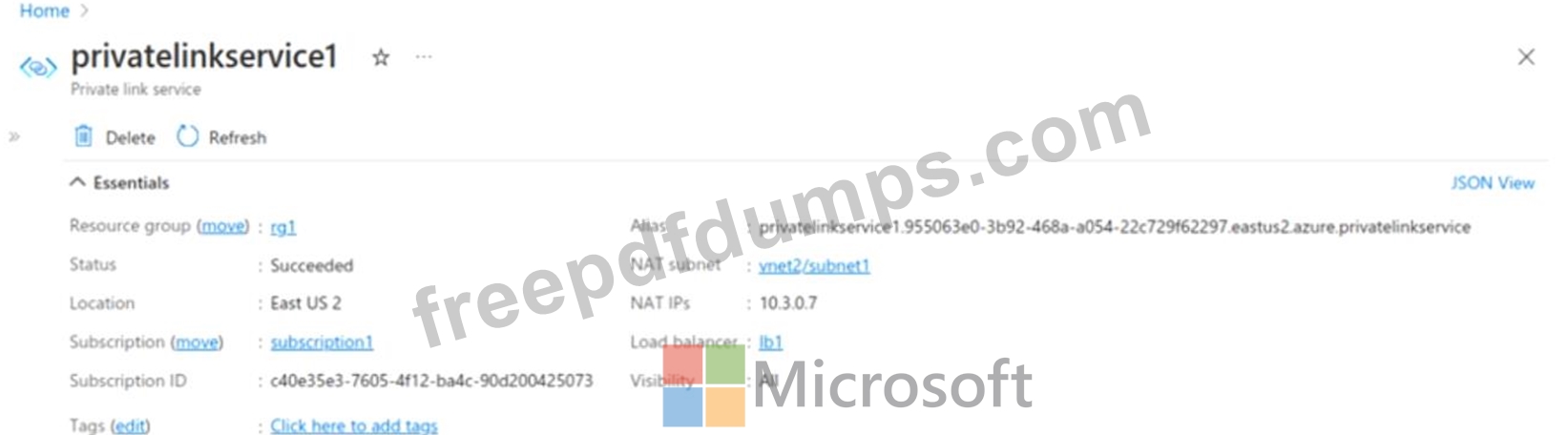 You configure a private link service as shown in the privatelinkservice1 exhibit. (Click the privatelinkservice1 tab.)