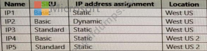 You have an Azure subscription that contains the public IPv4 addresses shown in the following table.