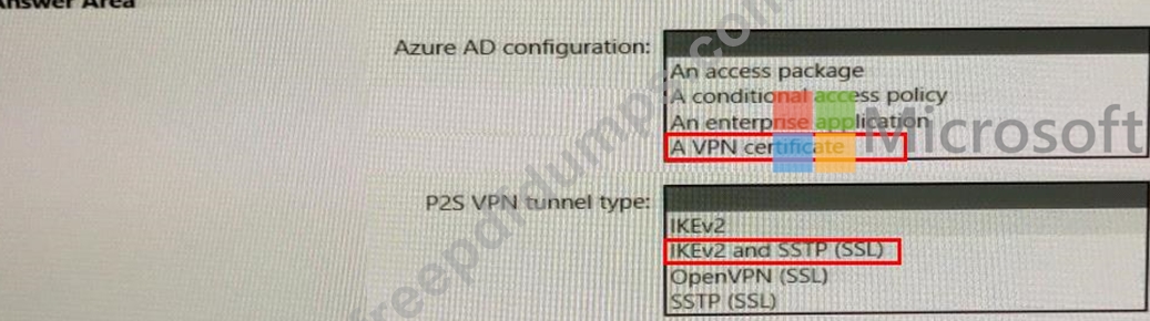 You need to ensure that administrators can use Point-to-Site (P2S) VPN connections to access resources in the virtual network. The connections must be authenticated by Azure Active Directory (Azure AD).