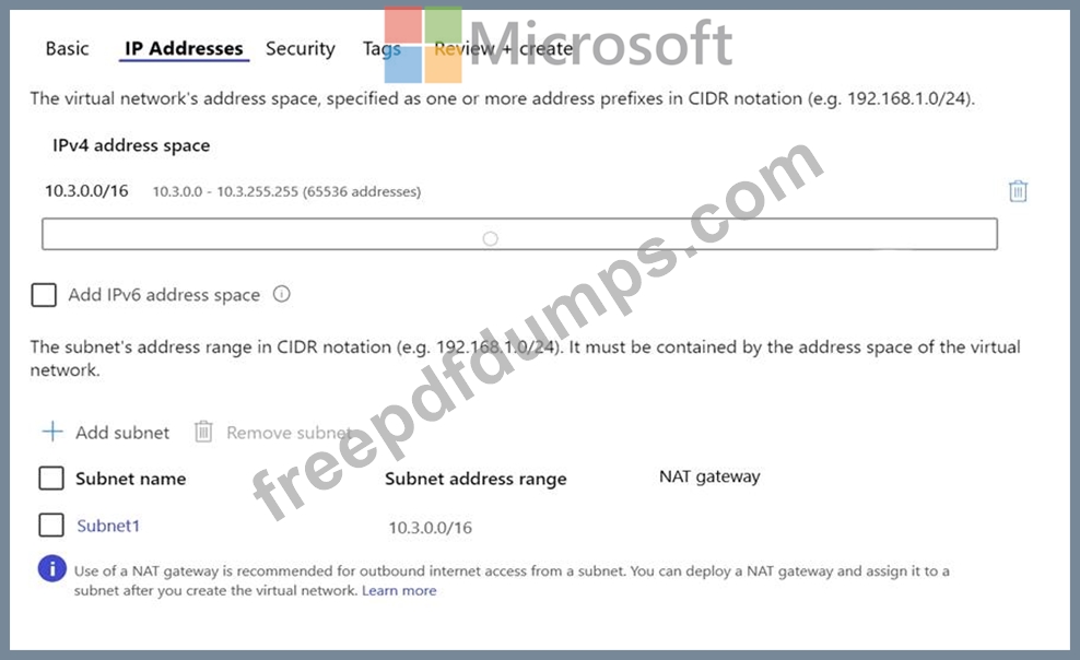 The IP Addresses settings for Vnet1 are configured as shown in the exhibit.