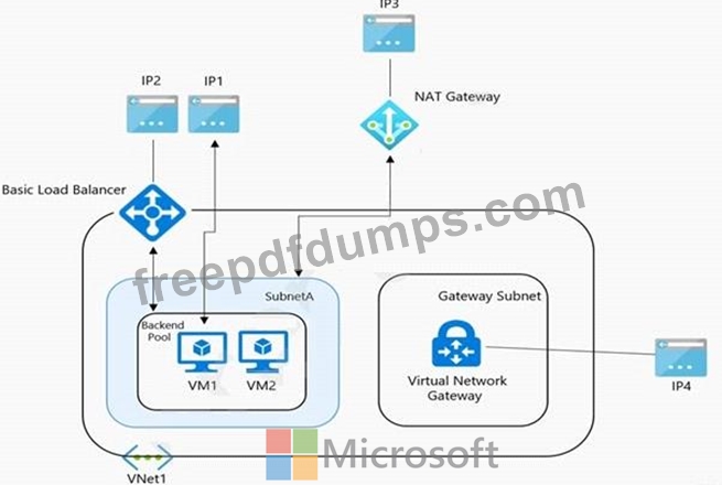 VNet1 has a virtual network gateway that has a public IP address named IP4.