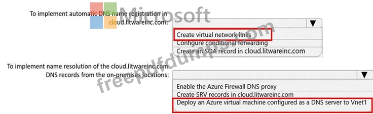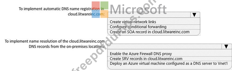 You need to implement name resolution for the cloud.liwareinc.com. The solution must meet the networking requirements.