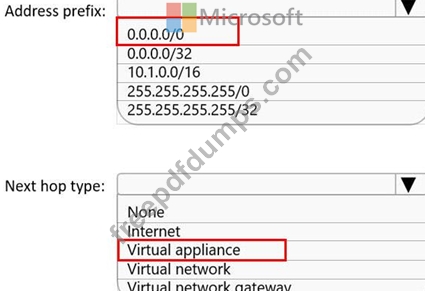 What should you include in a custom route that is linked to Subnet2? To answer, select the appropriate options in the answer area.