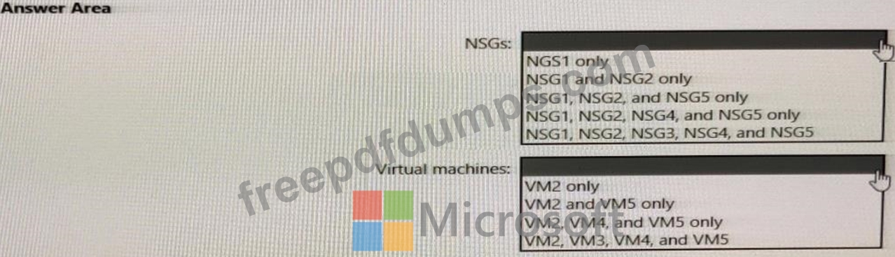 In which NSGs can you use ASG1 and to which virtual machine network interfaces can you associate ASG1? To answer, select the appropriate options in the answer area.