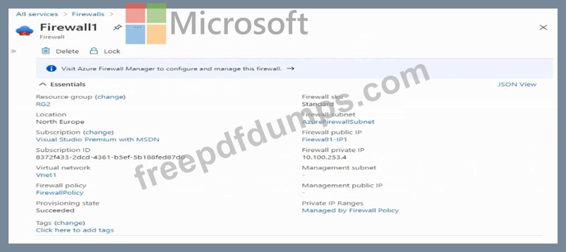 You have the Azure firewall shown in the Firewall 1 exhibit. (Click the Firewall tab.)