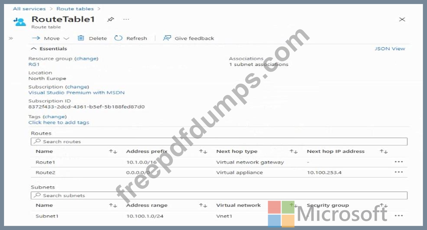 You have an Azure virtual network named Vnet1 that contains two subnets named Subnet1 and Subnet2.