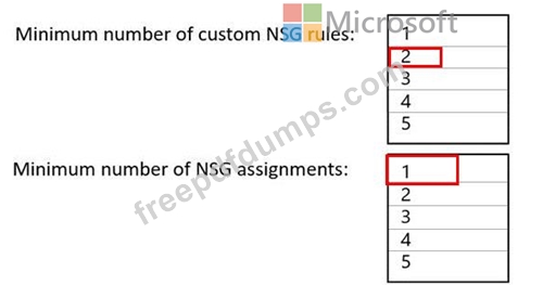 What is the minimum number of custom NSG rules and NSG assignments required? To answer, select the appropriate options in the answer area.