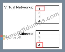 You need to identify how many virtual networks and subnets are required for the solution. The solution must minimize costs to transfer data between virtual networks.