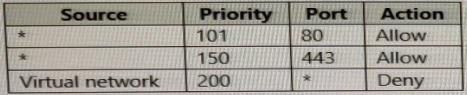In NSG1, you create inbound rules as shown in the following table.