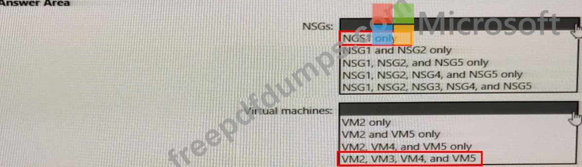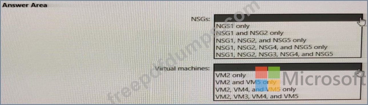 In which NSGs can you use ASG1 and to which virtual machine network interfaces can you associate ASG1? To answer, select the appropriate options in the answer area.