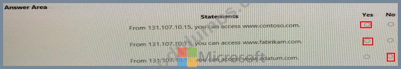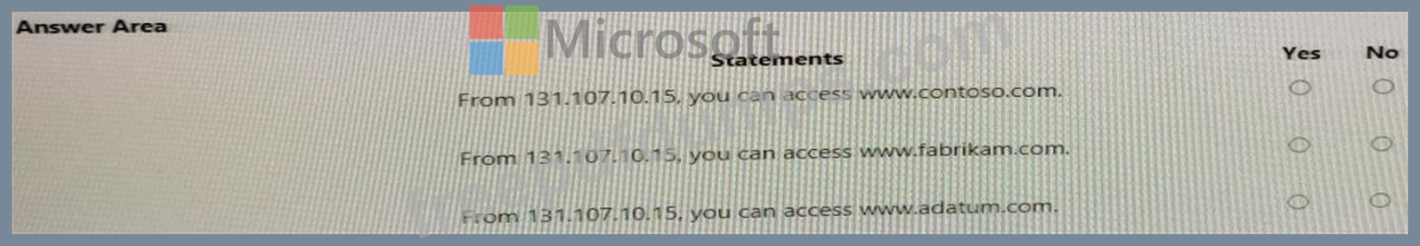For each of the following statements, select Yes if the statement is true. Otherwise, select No.