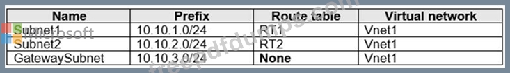 The subscription contains the subnets shown in the following table.