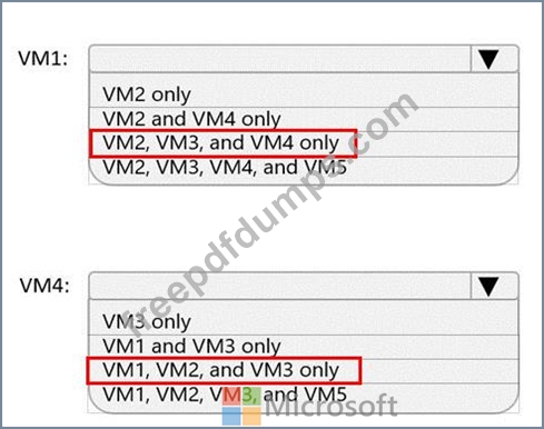 Which virtual machines can VM1 and VM4 ping successfully? To answer, select the appropriate options in the answer area.