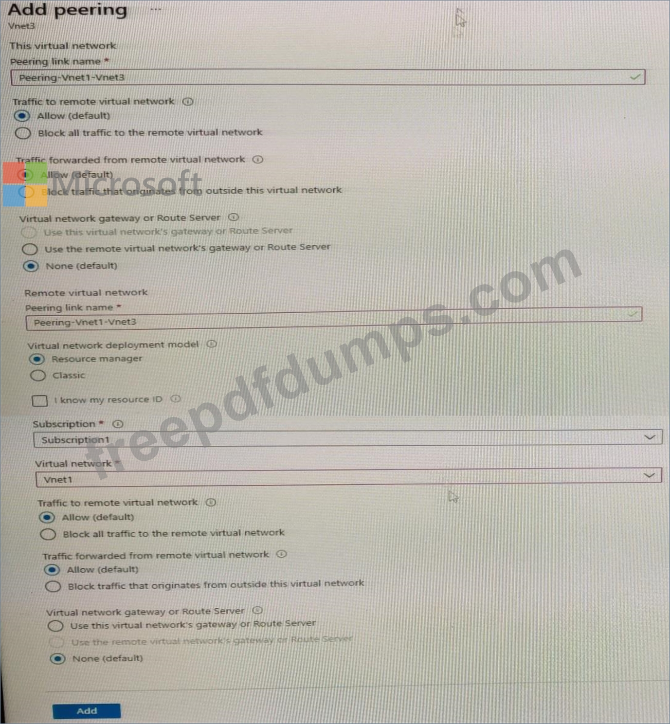 You have a peering connection between Vnet1 and Vnet3 as shown in the Peering -Vnet1-Vnet3 exhibit.