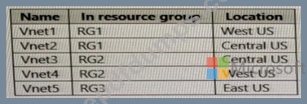 You have an Azure subscription that contains the virtual networks shown in the following table.
