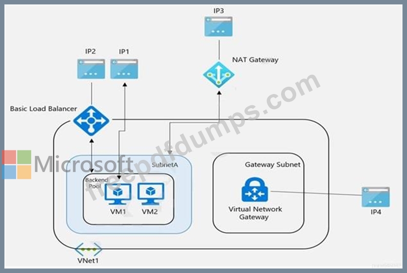 VNet1 has a virtual network gateway that has a public IP address named IP4.