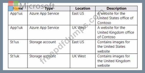 Your company, named Contoso, Ltd, has an Azure subscription that contains the resources show in the following table.