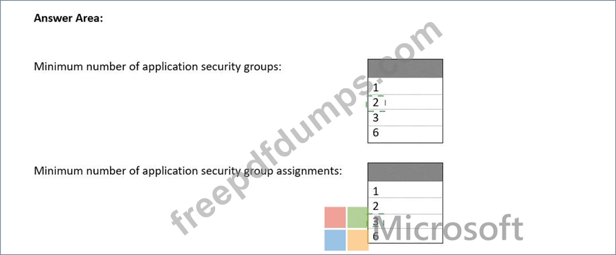 How should you configure the application security groups? To answer, select the appropriate options in the answer area.