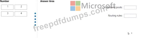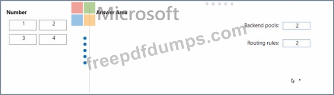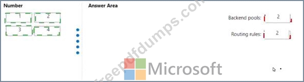 What is the minimum number of backend pools and routing rules you should create? To answer, the appropriate number to the correct component. Each number may be used once, more than once, or not at all.