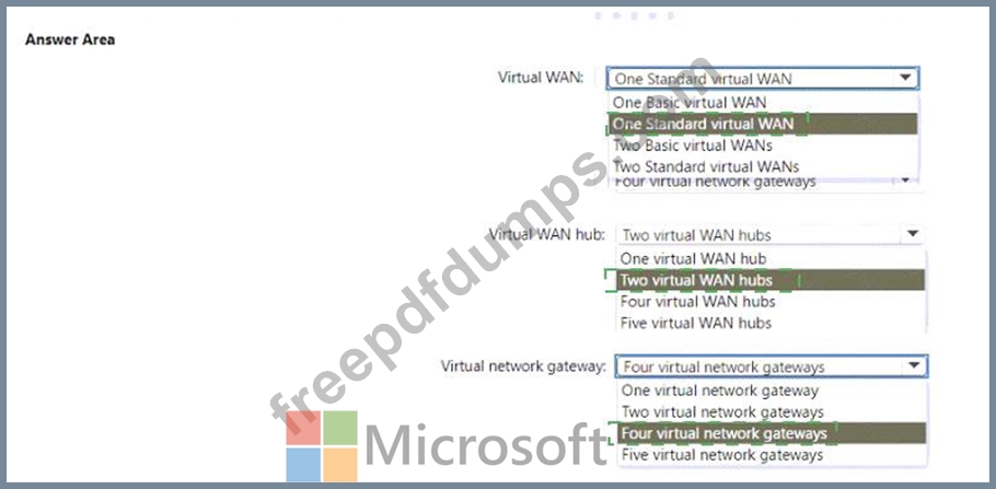 What is the minimum number of Virtual WAN resources required? To answer, select the appropriate options in the answer area. NOTE: Each correct selection is worth one point.