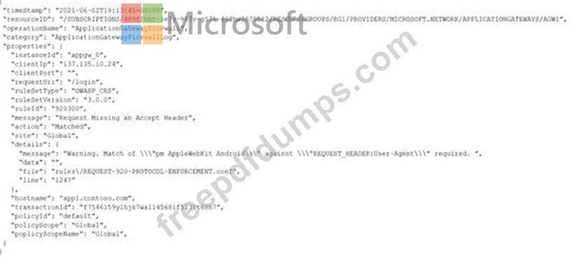 Solution: You create a WAF policy exclusion for request headers that contain 137.135.10.24.