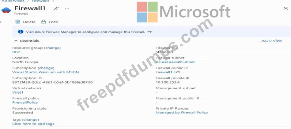 You have the Azure firewall shown in the Firewall 1 exhibit. (Click the Firewall tab.)
