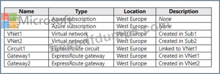Vnet1 connects to an on-premises datacenter by using ExpressRoute.