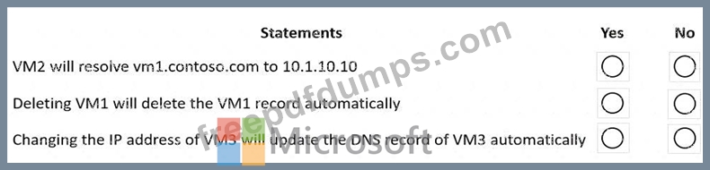 You have an Azure private DNS zone named contoso.com that is linked to the virtual networks shown in the following table.