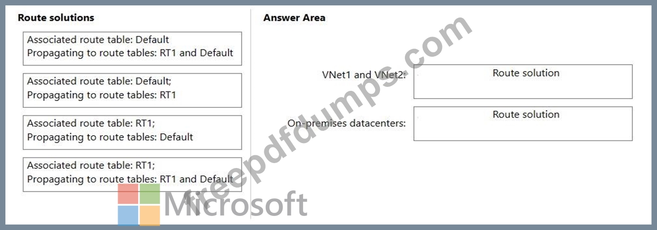 - Connectivity between VNet1 and VNet2 and both on-premises datacenters must be allowed.
