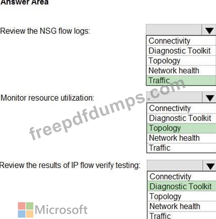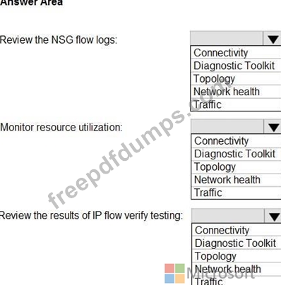 Which Azure Monitor Network Insights feature should you use for each action? To answer, select the appropriate options in the answer area.