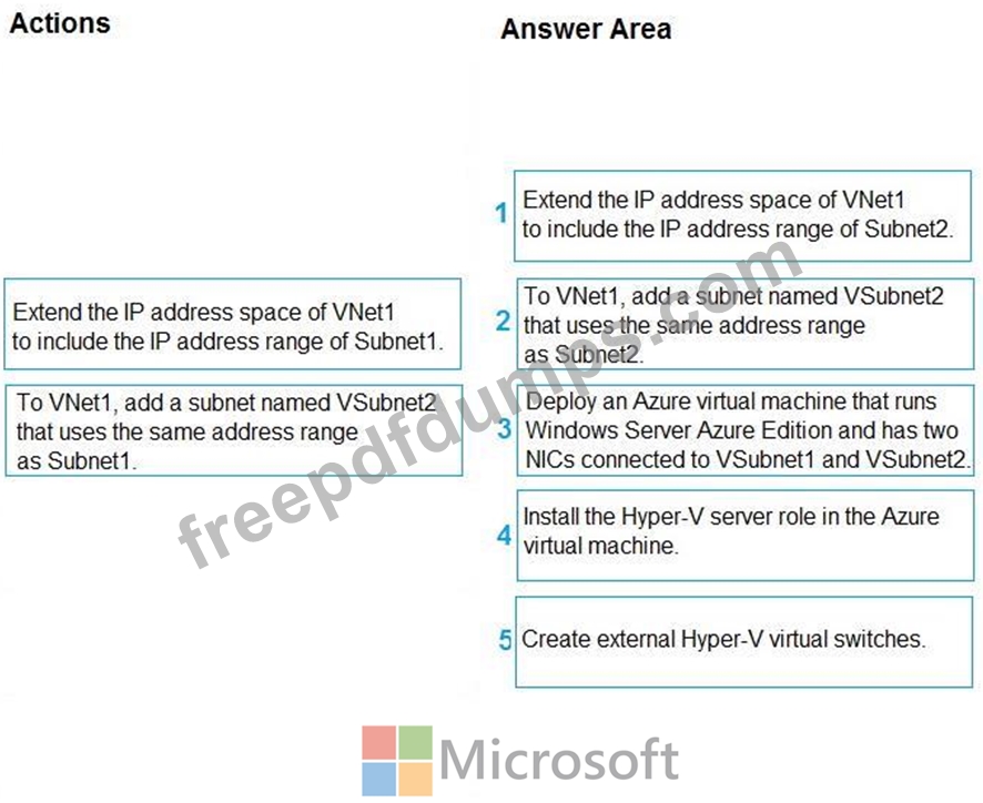 Your on-premises network contains two subnets named Subnet and Subnet2. Subnet2 contains a Hyper-V host that contains two virtual machines named VM1 and VM2. VM1 and VM2 are connected to Subnet2.