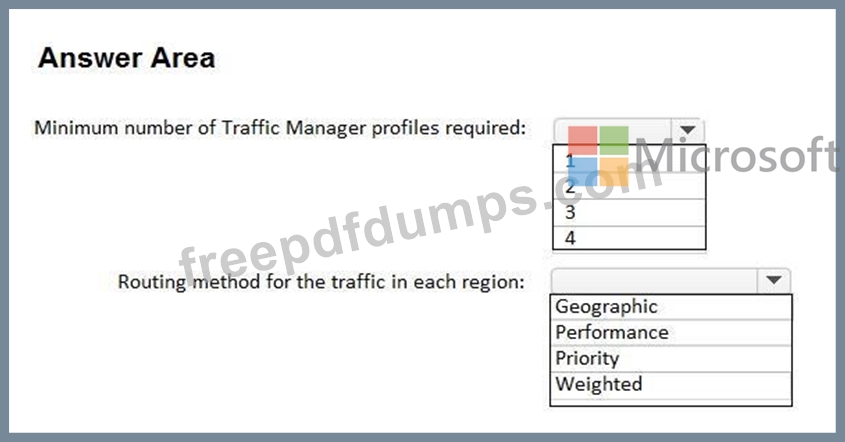 You need to implement Azure Traffic Manager to meet the following requirements:
