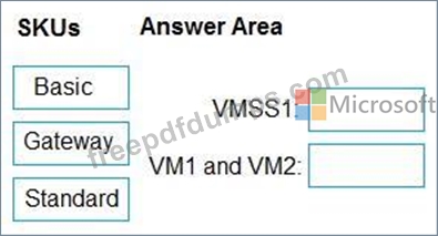 Which load balancer SKU should you include in the solution? To answer, drag the appropriate SKUs to the correct resources. Each SKU may be used once, more than once, or not at all. You may need to drag the split bar between panes or scroll to view content.