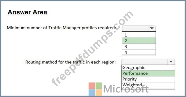 How should you configure the Traffic Manager profiles? To answer, select the appropriate options in the answer area.