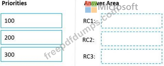 Which priority should you assign to each rule collection? To answer, drag the appropriate priority values to the correct rule collections. Each value may be used once, more than once, or not at all.