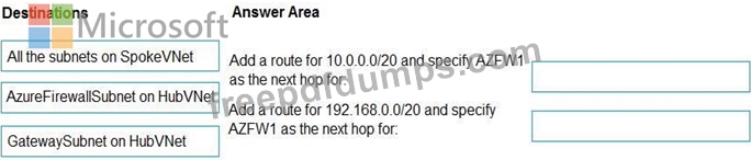 You deploy an Azure firewall named AZFW1 to HubVNet.