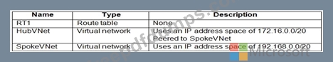 Your on-premises network uses an IP address space of 10.0.0.0/20.