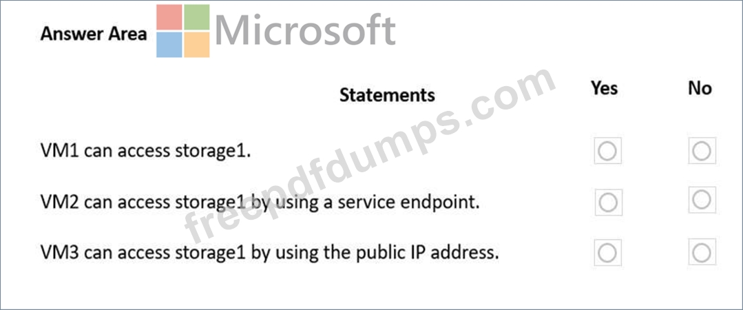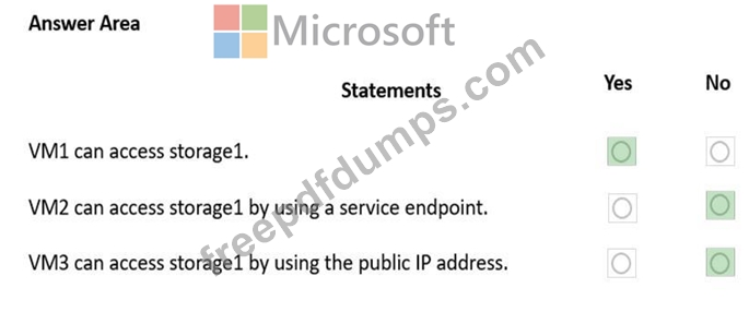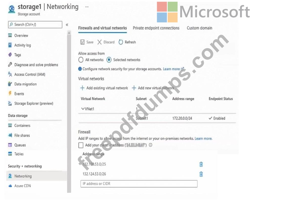 The Firewalls and virtual networks settings for storage1 are configured as shown in the Storage1 exhibit.
