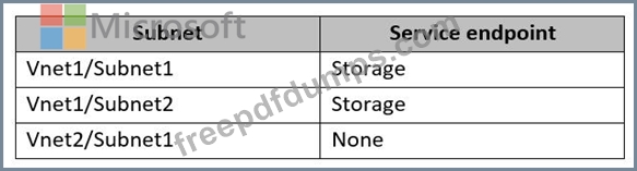 The Azure subscription contains the virtual networks and subnets shown in the following table.
